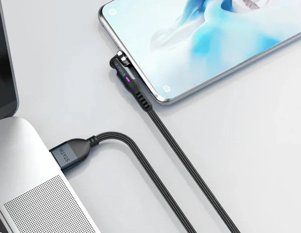 Keep gaming or streaming when you need a charge. Connect it to a charger, laptop, or car via USB-A. Its USB-C connector ensures you can stay plugged in without your cable getting in the way, providing full 360° rotation and 180° angle pivoting. Additionally, it's constructed with a durable nylon sleeve tested to withstand 20,000 bends, preventing damage from everyday use. It offers transfer speeds up to 480 Mb/s and compatibility with Apple CarPlay and Android Auto, with a power output up to 12W