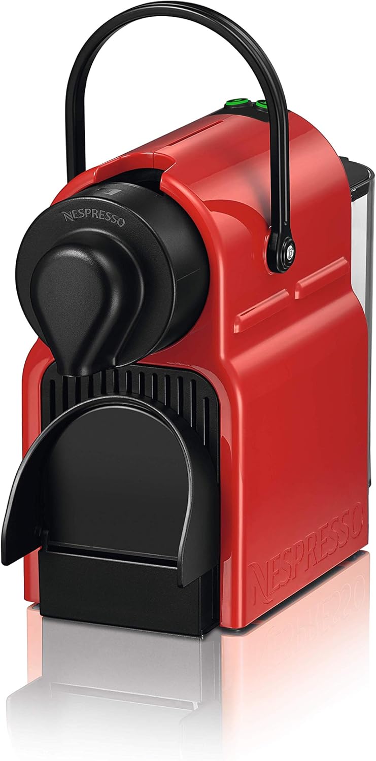 The Nespresso Inissia (C40) in red combines compact design with powerful performance, ideal for creating your favorite espresso quickly and effortlessly. Its lightweight structure and fast heat-up time make it perfect for any kitchen or office. Featuring an intuitive one-touch system, it ensures consistent extraction and rich crema with every cup, delivering professional-quality coffee tailored to your taste. The vibrant red finish adds a stylish touch to your countertop while making a bold statement.